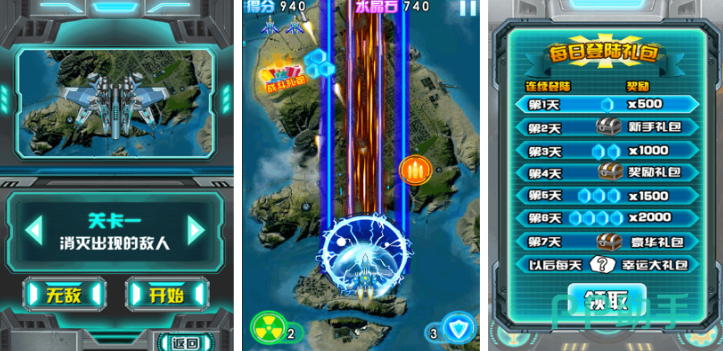 雷霆战机2016游戏中,整合了多种经典飞机游戏的玩法元素,以丰富的内容和社交互动为特色,核心系统是装备养成,玩家可收集战机、引擎等装备,每种装备都有不同的品质与属性,通过合成、升级可提升战力,战斗中除了常规射击,还需应对环境障碍,太空关卡的陨石雨需要及时击碎,都市关卡的高楼大厦会遮挡视线,极地关卡的冰层可能冻结战机的移动轨迹。