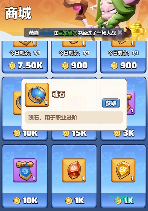 然后这里还设有商城,提供抽卡、锻造材料,针对性提升战力。有一些道具可通过金币购买,或者免费获得。大家可按需购买,如果追求更高性价比的话,就可优先选择一些高折扣的道具或者礼包,这样就不用花太多时间去刷副本。