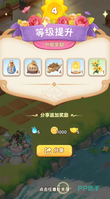 而作为回报,其他好友也会来到玩家的花园进行助力,帮忙处理花园里的日常事务,这样可以提高玩家每日的种植速度,缩短花朵成熟时间,能更快地收取花朵用于售卖。而且好友之间还可以互相共享订单,部分玩家的生意比较火爆,订单数量过多难以独自完成,就会分享一部分订单给好友消耗,那么玩家们就可以接取这部分的订单来获得额外的经济,完成共享订单后还能增加与好友的亲密度,同时还可以加深好友之间的关系。