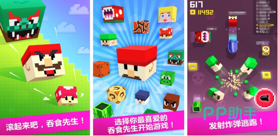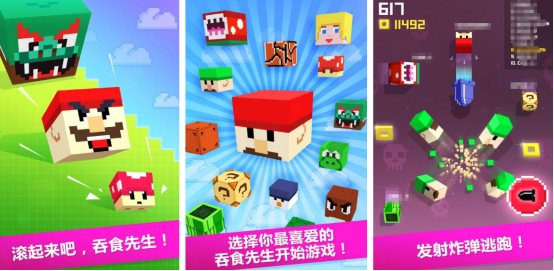 色彩丰富的游戏画面,将会让玩家走入到奇特的开放世界方块世界当中。映入眼帘的就是有各种各样的方块人以及方块的建筑物等等,刚开始的自己特别渺小,几乎不值得一提,但是通过吃掉其他玩家的方式就会让自己变得更加强大,最终还成为了最大的巨无霸吞食先生。其中还有很多辅助道具都可以由玩家随意使用,比如快跑功能以及恐慌炸弹等等。