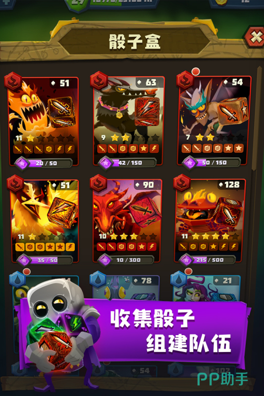 控制着你们手中的骰子,在每一个关卡之中进行投掷,从而来体验到游戏内的精彩战斗的表现,升级你们的骰子就可以获得不同的效果,还有很多稀有的技能可以在这里获取,《骰子猎人》这款手游中的神话世界观的表现相当的特别,多样化的美术风格的存在效果,确实是不同的哦。