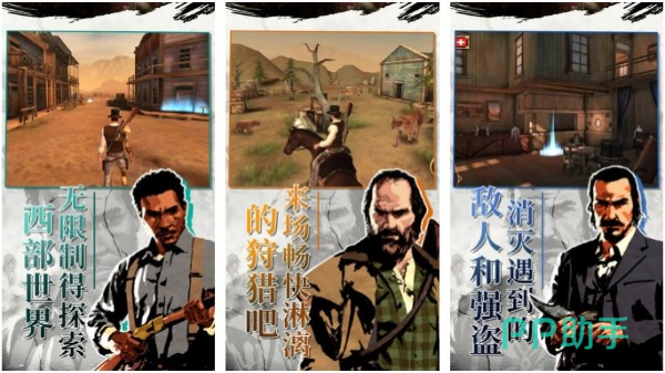 此游戏为各位玩家构筑了一个,极具震撼力的中世纪背景西部荒野,《西部大镖客》中提供着矿山、森林绿洲、沙漠等情景,令各位可以在其中驰骋,挑战各种任务。经典的左轮手枪,霰弹枪等武器,能够任由玩家朋友们武装利用以及改造。在战斗玩法之外,游戏内也设有丰富的剧情任务,例如地盘争夺火拼、帮助追捕通缉犯等。
