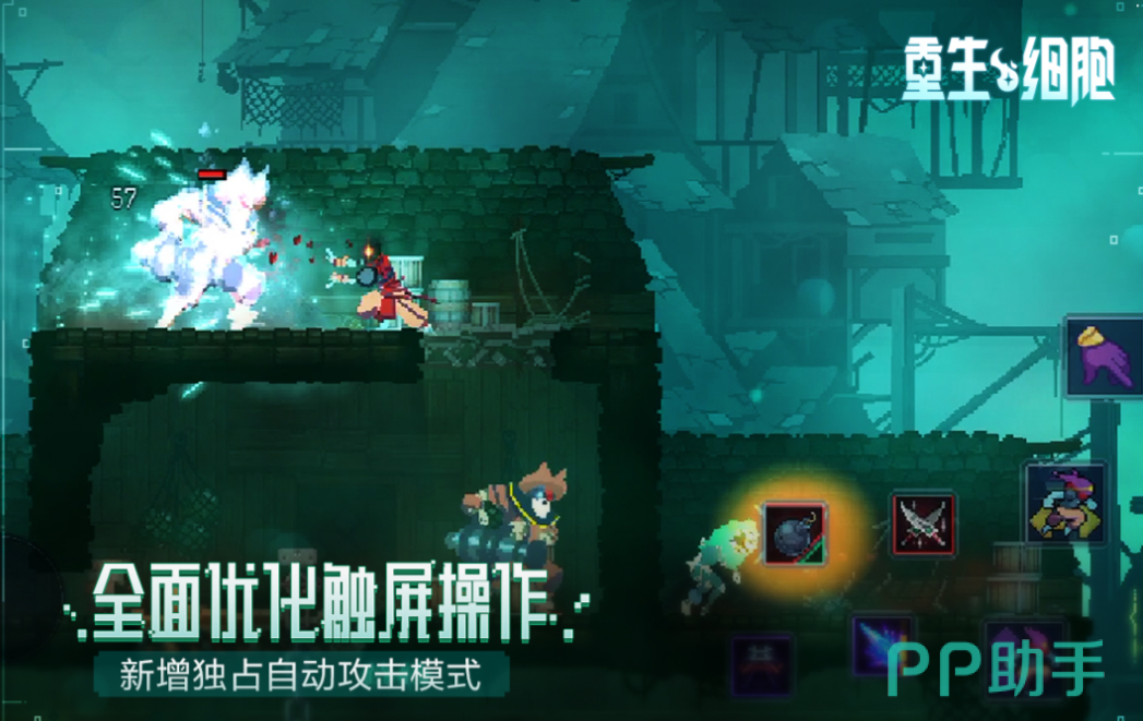 重生细胞这款买断制的steam移植游戏名声一直都很大,不断在地牢中战斗并生死轮回的玩法刺激性拉满,拥有卓越的打击感跟肉鸽互动的元素,超炫的像素粒子特效配以精彩剧情也是点睛之笔,智能优化的全屏操作理念更让游戏的可玩性大大提升,全新加入了自动攻击的模式只需玩家控制方向即可。