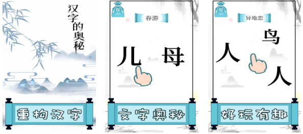 文字的奥妙是能让玩家重组汉字的精品解谜游戏,借此机会玩家会感受到文字游戏真正的趣味性,硬核完善的文字解谜设定让文字游戏粉丝乐在其中,自由拼凑汉字的玩法跟多样的偏旁部首相得益彰,水墨国风的背景风格带来的视觉效果更加舒适,硬核的文字互动设定更容易让玩家学习更多汉字。