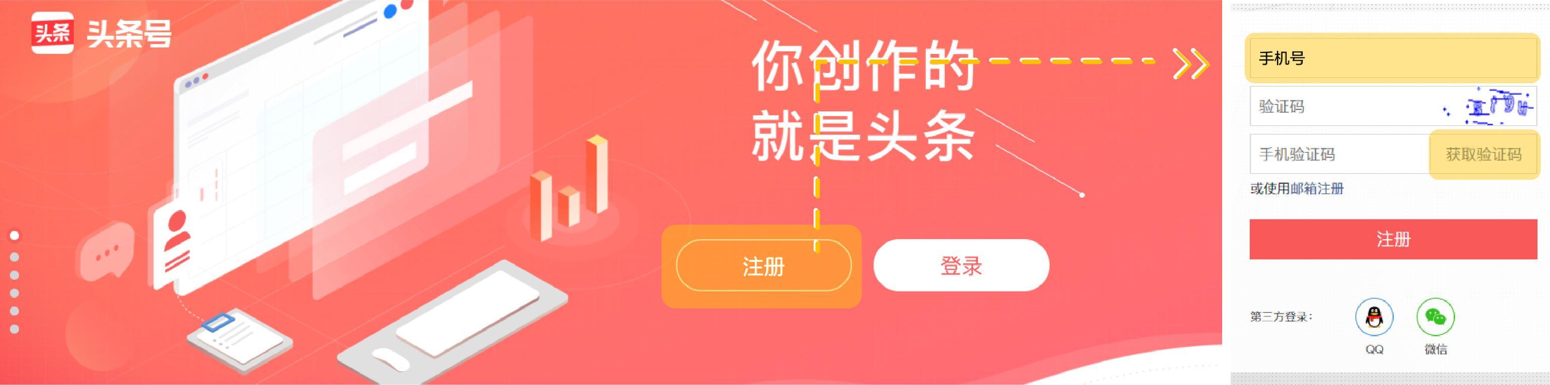 ① 展开头条号背景(https://mp.toutiao.com),点一下【申请注册】