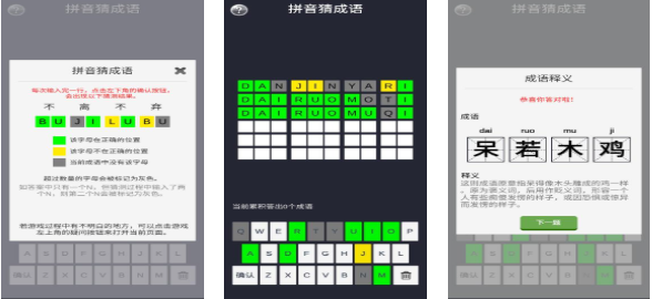拼音猜词语是款拥有词语解谜主题的单机益智类手游,特殊的解谜互动体验让词语游戏爱好者心驰神往,更加入了成语解释的游戏模式具备更多延展性玩法,可以使用超多的汉语拼音完成词语互动任务,精彩好玩的词语解谜环节让游戏更受大家欢迎,全是拼音注解的游戏设定也让低龄孩子很容易接受。