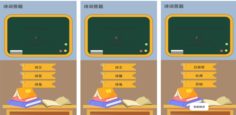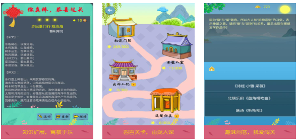诗词论剑是款具备着特殊问答元素的精品解谜游戏,游戏中的谜题都跟诗词相关还呈现出三个答案,玩家要尝试理解题目并选择合适的答案完成任务,这款诗词主题的解谜游戏互动性无与伦比,整体包含的知识点更多足以丰富大家的认知,游戏环境安静悠闲带来的卓越气氛更容易让玩家沉浸。