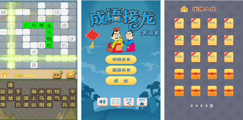 这是款可以连接各种成语并学习知识的解谜游戏,玩家要尝试在屏幕下方选择合适汉字进行填写,让成语横竖连接完整即可通过一些关卡,这款成语解谜主题的游戏难度还是不小的,多样关卡助力玩家学会更全面的成语知识,成语接龙与闯关主题玩法的加持互动性直线提升,初级、高级等众多成语互动模式等你体验。
