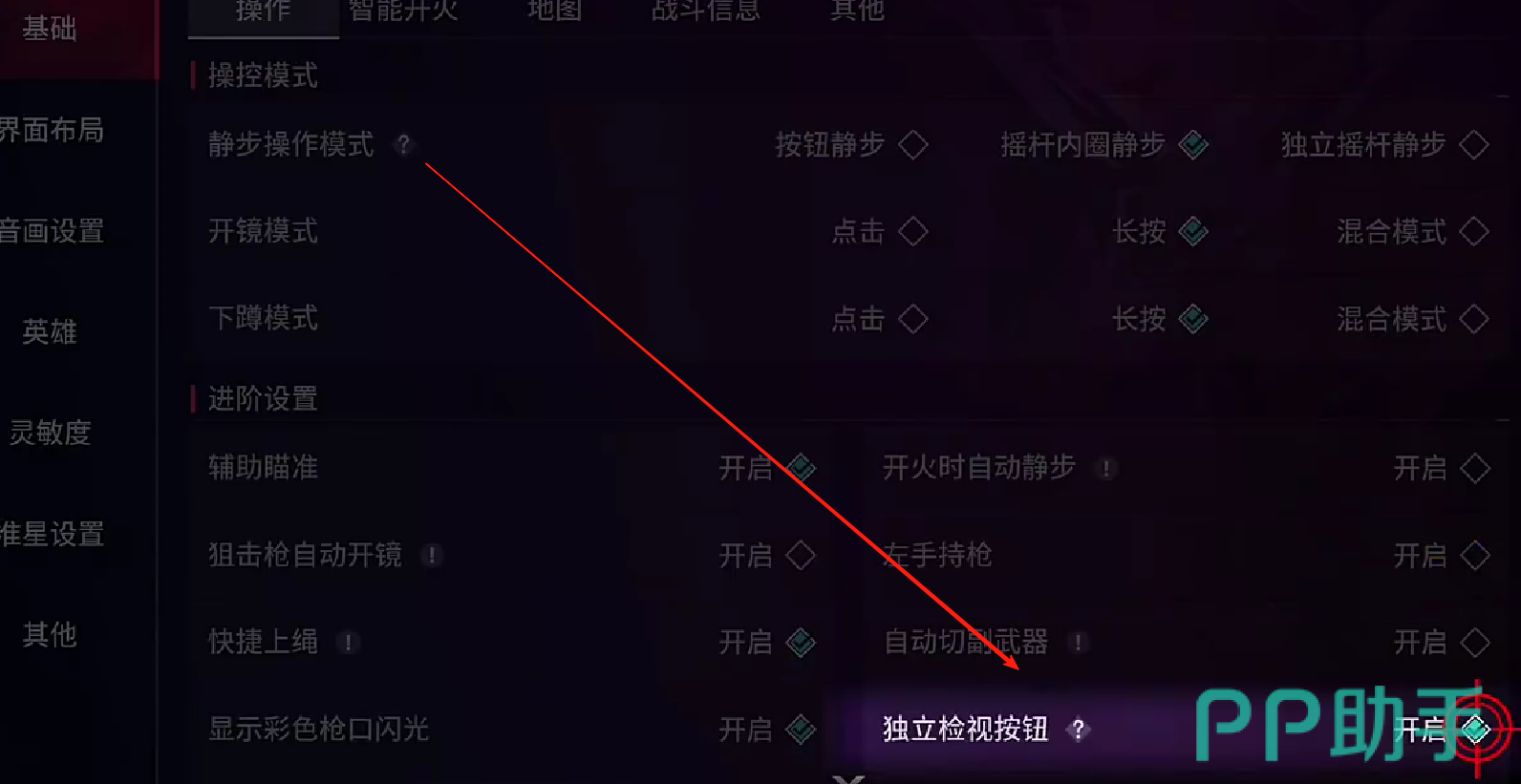 值得一提的是,游戏当中可以进行独立设置的控件,不只是有检视,也有静步功能,以及维持移动的功能,当然,检视功能属于游戏内的附属外观型功能,它的重要性并不高,玩家也可以直接取消掉该功能,保证所有的功能区块,都是作用于战局的。