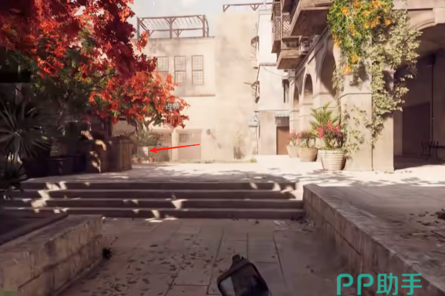 7、太平军B点外侧花园,小花园这里花箱是突出来的,利用这个一直往上跳爬到楼顶处。
