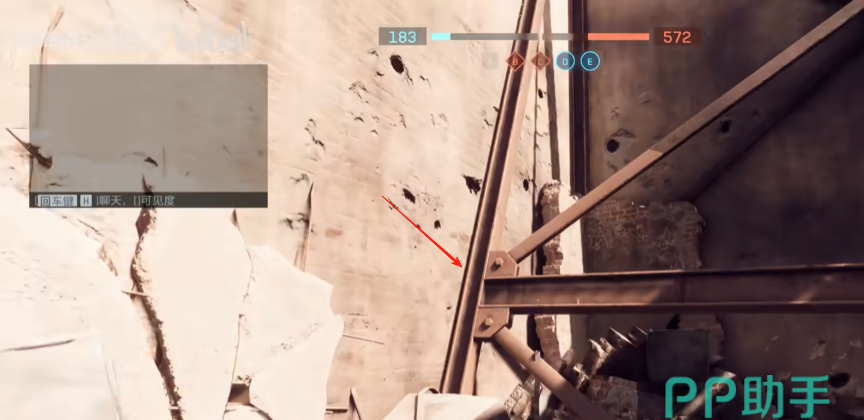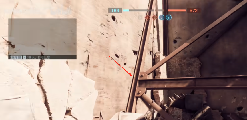 9、北约E西北侧这里是有个烂墙根,爬上去之后跳到电线杆上,就能借力继续往对面墙体上跳。然后在墙缝的钢架上架个盾,继续往上爬就行了。
