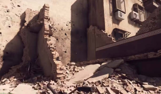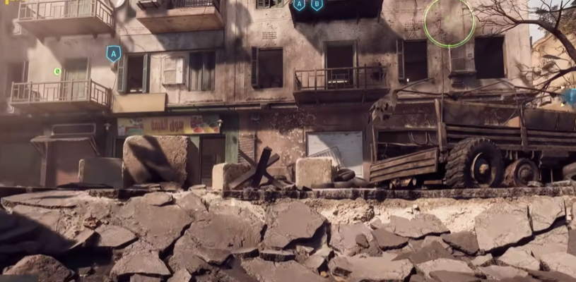 在开罗围城这个地图中,城市建设比较复杂,有很多天线,空调外机,彩钢瓦等供玩家进行攀爬。