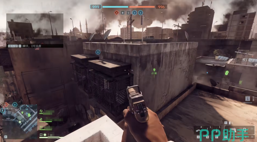 3、北约出生点倒塌的墙壁处,靠着钢筋一点点往上爬就能利用滑翔伞在不同楼顶处进行移动。