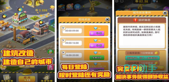 以放置以及模拟经营的玩法为核心玩家在自己所处的城市当中一直以来都有一个梦想,就是希望让自己能够自己创业开设店铺,为了实现自己的梦想,还做出了更大的努力,这里也呈现出来的类型,店面特别丰富,玩家只要将这些店面快速开设之后,就可以打造出自己超高的商业街。随着客流量越来越高,会让自己赚到更多的金钱,也会成为真正的富豪。