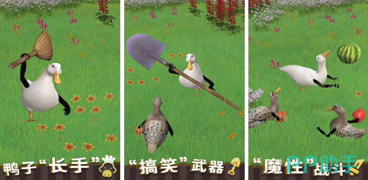 在这款鸭子主题的游戏中所有的鸭子都有着双手,可以使用双手与各种道具进行互动,长手的鸭子造型滑稽生动而且玩法也十分特殊,魔性十足的战斗体系让本作的可玩性大大提升,鸭子造型形形色色还呈现出三维精致的建模技术,森系绿色的主题场景也给玩家心旷神怡的游戏体验哟。