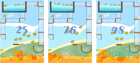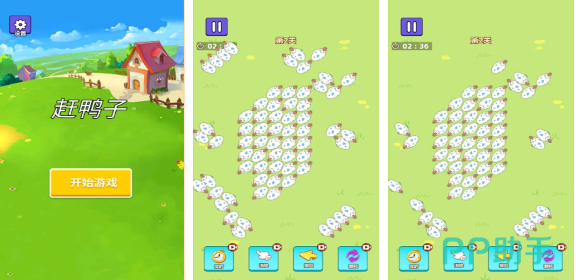 赶鸭子其实是款跟华容道差不多的单机版本鸭子主题游戏,你需要根据鸭子头部的朝向点触鸭子进行移动,将所有的鸭子都送回农舍就可以完成任务,游戏呈现的任务并不繁琐且关卡也是多种多样,一共四种能力各异的道具可以跟鸭子进行互动,满屏鸭子的画面呈现给人密密麻麻的既视感。
