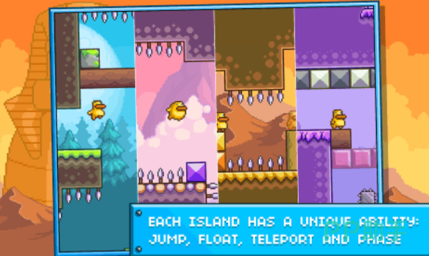 反重力鸭子是款拥有特殊闯关性质的横版冒险类游戏,你将扮演一个能够反重力的鸭子执行冒险,小鸭子甚至能在天花板上奔跑躲避障碍陷阱,像素风整体背景和很搞笑的美术风格交相呼应,游戏过程中传来的嘎嘎叫声也给人留下深刻印象,反重力主题的横版冒险机制增添了这款佳作的可玩性。