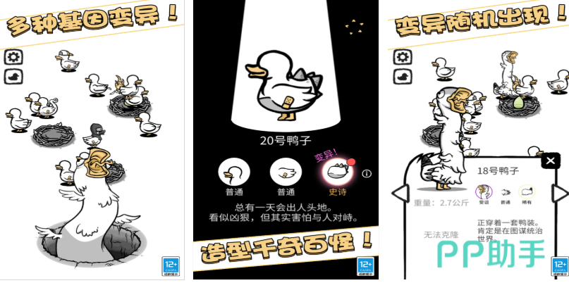 本作是款可以培养各种各样的鸭子的特殊养成类游戏,你可以融合形形色色的基因让小鸭子的造型更多样,随机出现的变异体鸭子会给人眼前一亮的感觉,萌系手绘的美术让鸭子的造型更加多样,新颖古怪的特殊玩法呈现也是鸭子爱好者的最爱,模拟培养鸭子并经营农场的特殊玩法规则增加了本作魅力。