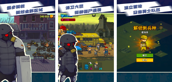 全民僵尸大战,也是一款恐怖系数低的僵尸游戏。紧张刺激的末日求生氛围,复古经典的像素画风,让众多胆小玩家,也可快速接受。多个区域设定,从都市街头到恐怖农场,玩家都可逐一挑战。全员保卫大巴车,抵御恐怖僵尸的侵袭。30+兵种,帮助你击败僵尸boss,收集生存资源,快速建造庇护所。