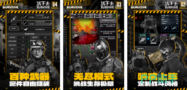 末日求生survival,为您营造出一个僵尸横行,食物短缺的末日世界,紧张刺激感瞬间爆棚。将手绘漫画风,与文字解谜游戏相结合,在探索末世的同时,解锁更多紧张刺激的有趣故事。超多NPC角色,在游戏中不断与你相遇。各种随机突发事件,更是让玩家意想不到。百个战斗任务内容,独特的升级系统,激发玩家们的求生斗志。