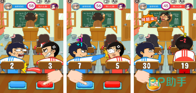 同桌大作战游戏中,聚焦课堂上的趣味对抗,将学生时代的小动作转化为游戏玩法,游戏的核心机制是隐蔽行动,玩家需在老师的视线之外进行操作,老师会定期转身巡视,屏幕上方的警惕条会随玩家的动作幅度增加,警惕条满后老师会敲击讲台发出警告,三次警告则游戏结束。