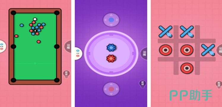 在双人大比拼游戏中,集合多种趣味竞技,手速挑战中屏幕会随机出现大量彩色方块,玩家需点击与目标颜色一致的方块,在10秒内点击数量多的一方获胜,期间会混入炸弹方块,点击会扣除分数,记忆翻牌里,屏幕上排列着数十张背面朝上的卡片,玩家轮流翻牌时,若两张卡片图案一致便能成功消除并斩获分数,能否精准记住已翻牌的位置,成为制胜的关键所在。