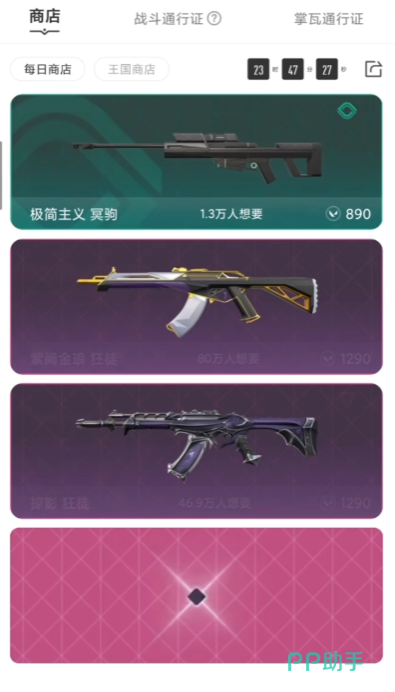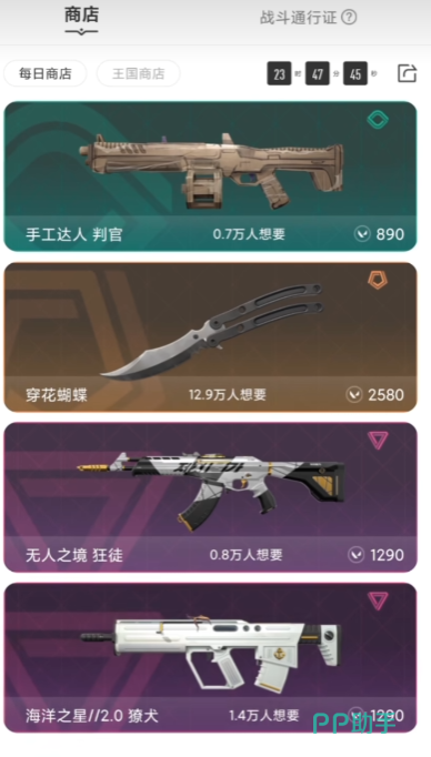 商店系统为玩家提供了丰富的个性化装饰道具,满足了玩家的收藏与展示需求,每日商店会在固定时间刷新四款随机武器皮肤,玩家可以使用游戏内代币购买心仪的皮肤,而代币可通过完成日常任务、参与活动等方式获取,每日商店上方还会定期推出套装,购买套装往往比单独购买更具性价比,且部分套装中的近战武器皮肤设计独特,具有较高的收藏价值,夜市作为特殊商店通常在赛季末开放,玩家在夜市中可获得六款随机皮肤的购买权,这些皮肤价格更为优惠,且有品质保证,为玩家提供了低价获取优质皮肤的机会。