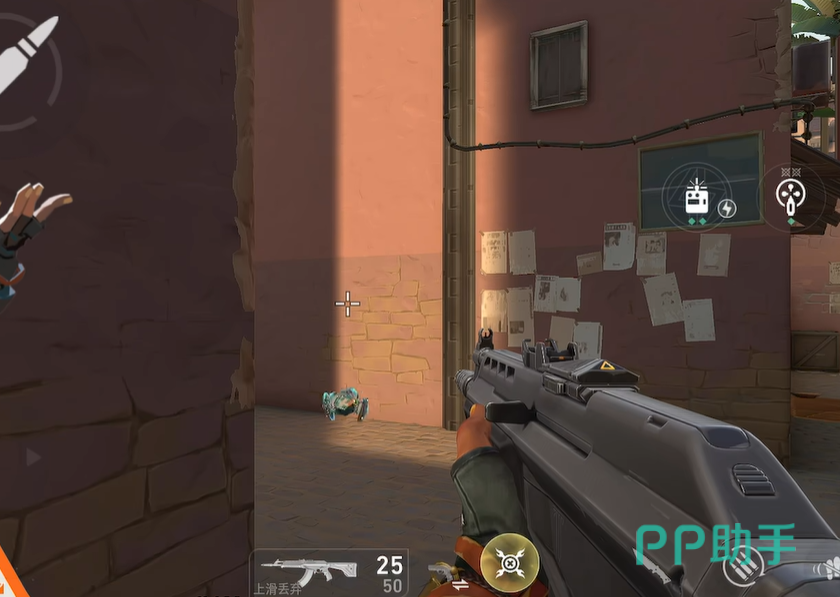 雷兹的定位是决斗英雄,其输出方式就是依靠技能和枪械的配合来进行攻击。一技能会部署一个小型炸弹机器人,如果碰到墙壁、箱子等障碍物会进行反弹,遇到敌人则直接触发爆炸,造成范围伤害。这个技能其实可以很好地探测敌方的位置,机器人爆炸或接触敌人时会在小地图上标记位置,以此提示我方的队友敌人的动向,方便团队调整战术。