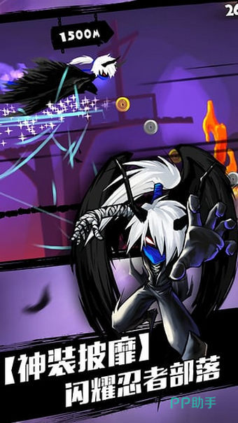 一款2d横版操作的跑酷类闯关游戏,玩家操控画面小人在地图上穿梭飞跃,越过各种障碍和对面发射的法术技能。加上忍者剧情设定,日系忍者发动技能,多种特效傍身,在奔跑的同时发动法术攻击,画面火团和炫光同时出现,闯关游戏玩出了竞技的爽感。同时加入全新的忍者外传剧情,将忍者文化和游戏巧妙融合。