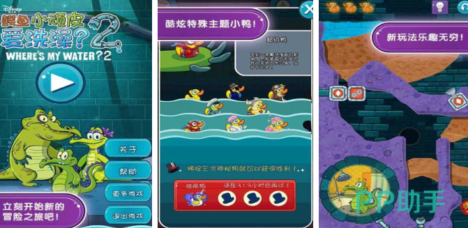 在鳄鱼小顽皮爱洗澡2游戏中,延续了前作的萌系画风,画面色彩比前作更加鲜艳,小顽皮的表情从开心到委屈都十分生动,液体的物理效果更加真实,都刻画得细致入微,游戏的核心目标依然是引导清水流到小顽皮的浴缸,但续作新增了更多机关与场景互动,谜题设计与场景主题结合紧密,下水道关卡需要避开毒水,利用泥浆的重量压下开关。