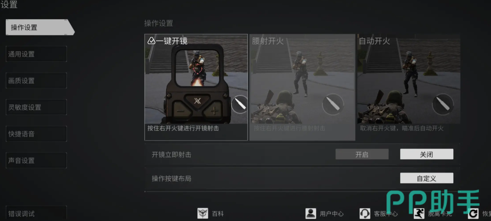 当然,除了一键开镜,也有腰射开火,自动开火等功能,玩家可以根据自己的操作习惯,进行设置。