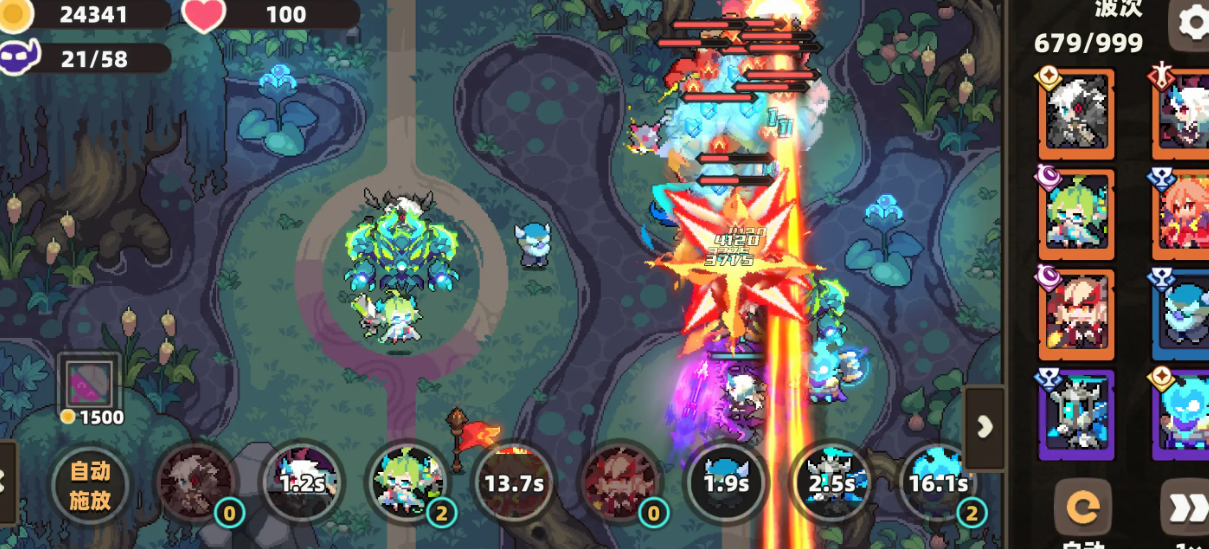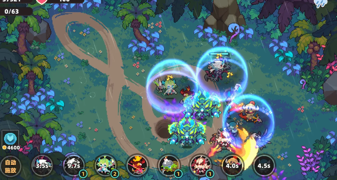 游戏基础战斗模式,采用了自由布阵的策略塔防玩法,玩家需要通过调整角色站位,以及各技能节奏,搭乘不同类型的动态战斗词条,来完成关卡挑战。