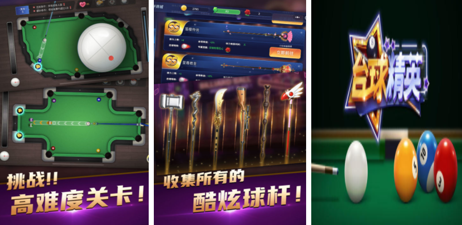 台球精英是一个非常有趣的横版台球游戏,虽然使用的是卡通画风,但里面依旧会设定一个立体的场景,玩家可以在这个场景里,挥动球杆不断击球,证明自己的能力,另外里面还会设定一些比较有趣的高难度关卡,可以通过这些关卡证明自身的实力,也可以在完成挑战之后,用积分兑换更加炫酷的球杆,感兴趣的玩家,可以加入的游戏里,感受台球对抗的乐趣。