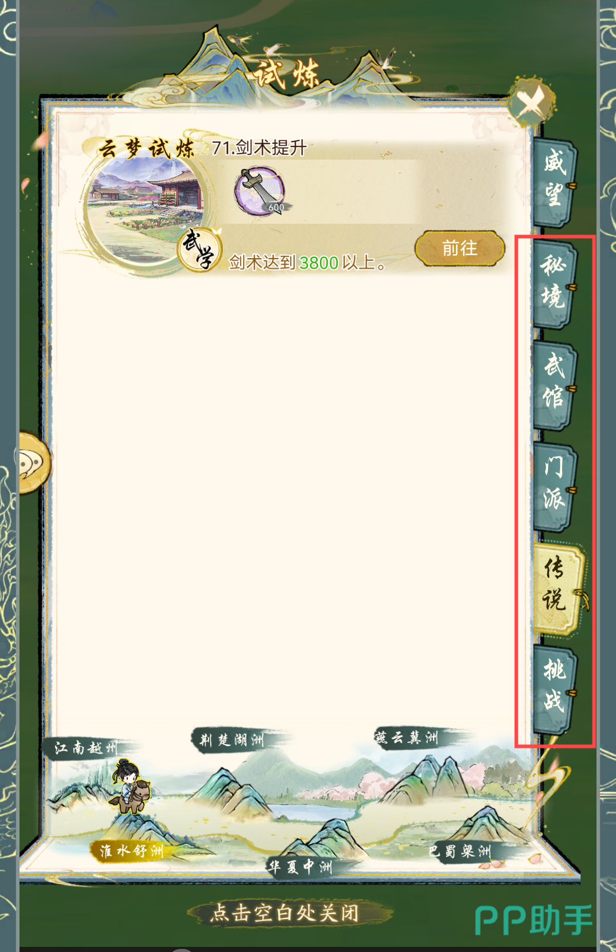 各城市有“算盘标志”的隐藏商人,可兑换紫色外功(杭州、开封、洛阳轮流刷新)。循环路线的话,就是杭州(辰时)→开封(午时)→洛阳(酉时)。奇遇任务奖励方面的话,可获得稀有武学(如《青莲剑歌》)、悟剑丹(用于突破武学等级)、剑意(升级内功/外功的关键材料)、NPC好感度(解锁特殊剧情或同行功能)。这些道具都很好用,可以提升大家的战力,并解锁全新的道具材料。