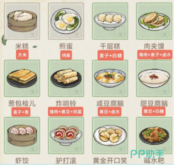 最后就是千层糕,其实在制作的过程当中,这是特别基础的一种主食需要的原材料并不丰富,反而呈现出了特别单一的样子,很多新手玩家在刚开始想要补充体力的话,那么就可以通过制作千层糕以及米糕的方式补充大量的体力值。如果想要提升与npc之间的亲密值,那么就可以选择制作黄豆焖甲鱼,将其赠送给npc之后就可以获得大量的亲密值,还可以解锁更多的稀有材料。