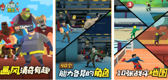 采用多边形风格,支持多人竞技与全球对手展开实时对战,并设有积分榜以及排名功能,要精准操控角色移动跳跃通过,躲避对手投掷武器的同时还要快速完成反击。有超过10张不同的战斗地图,包括高压电机、陷阱等不一样的特色元素,甚至有很多地图当中都加入了boss战争,通过团队协作个人技巧来击败 Boss成功霸占岛屿。