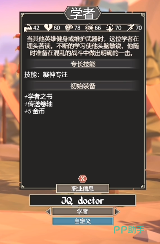 如果这几个角色都不喜欢的话,那就可以考虑学者,这是一个兼具了控场和输出能力的成员,可以利用自身的被动技能恢复专注值,在这个基础之上,玩家还可以选择一些高智力武器,这样就可以让角色实现无限技能循环,角色前期无法展现较为优秀的战斗力,可以等到中后期的地牢对战中再去使用,铁匠也是非常推荐的,不止带有防御能力,同时还可以进行近距离的战斗。