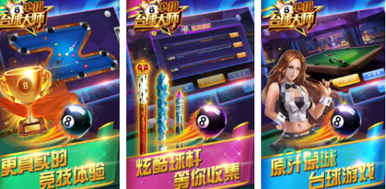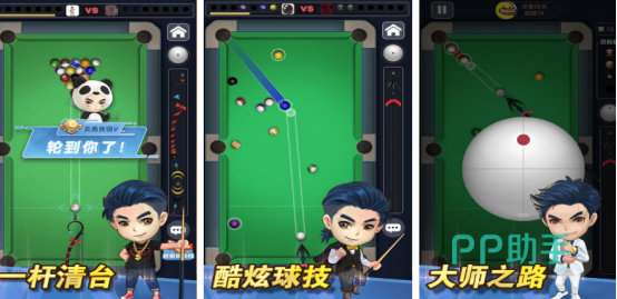采用高精度动态引擎,精准模拟球体碰撞旋转等不同的摩擦效果,除了有当前主流的八球玩法之外,也有九球、斯诺克等提供手动拉杆、跳球等不同的进阶方式。支持全球多人匹配与好友展开线上约战低网络延迟,确保拥有着极高的公平性,这里设计了挑战赛锦标赛等不同模式。
