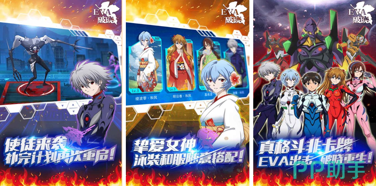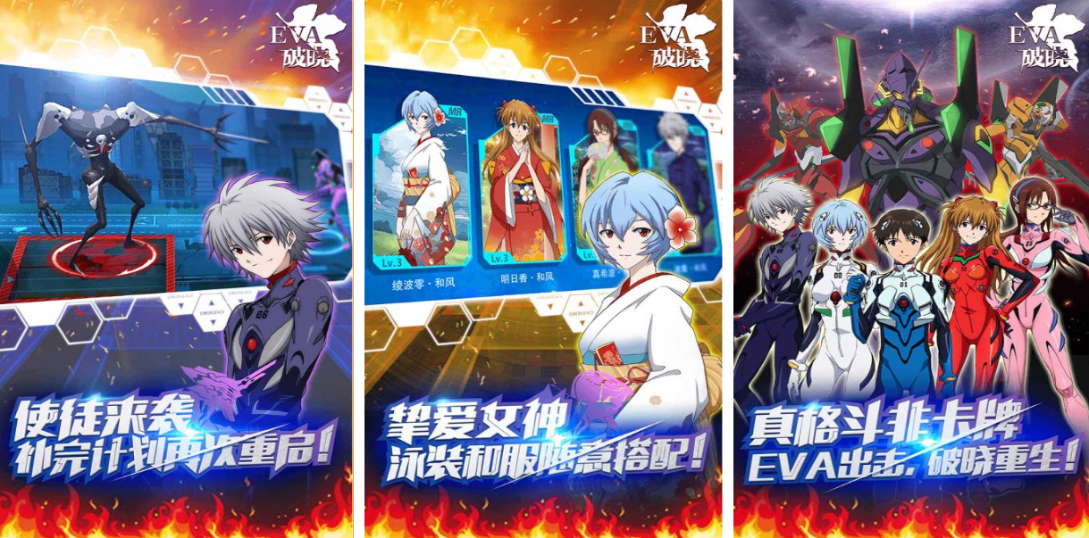 EVA:破晓这款纯正日系风格的机器人ACT游戏名气很大,将TV版和剧场版EVA的剧情进行了串联,非卡牌的真实格斗类玩法令玩家直呼过瘾,还加入了3V3PK和双人联机的模式可以参与,可以点触屏幕与适格者完成互动提升彼此的好感,甚至能解锁更多的适格者时装为游戏NPC尽情装扮哟。
