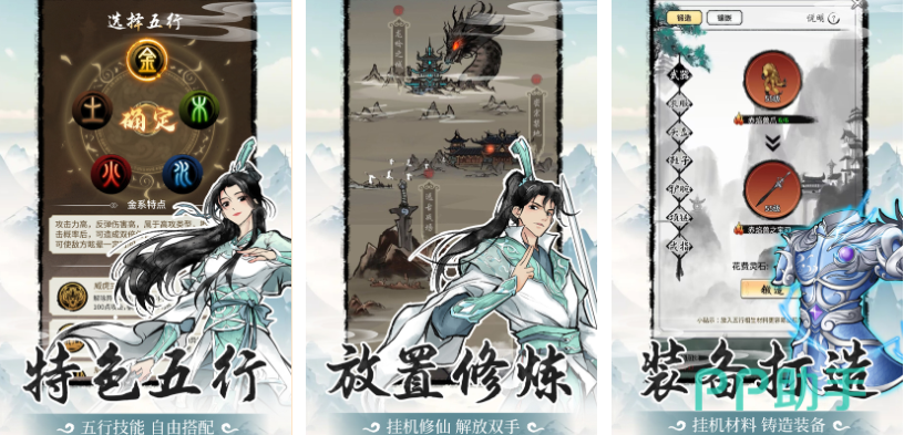 这是款具备特殊水墨风背景的放置山海经主题游戏,山海主题的世界观跟五行克制的特点交相呼应,支持玩家自定义打造装备用来提升整体实力,装备材料随意获取也可在PVE模式中获取资源,良心福利和水墨国风背景更受玩家的喜欢,在虚拟山海世界挂机修真的感觉更加沉浸,自定义修改技能参数可以开发更多流派。