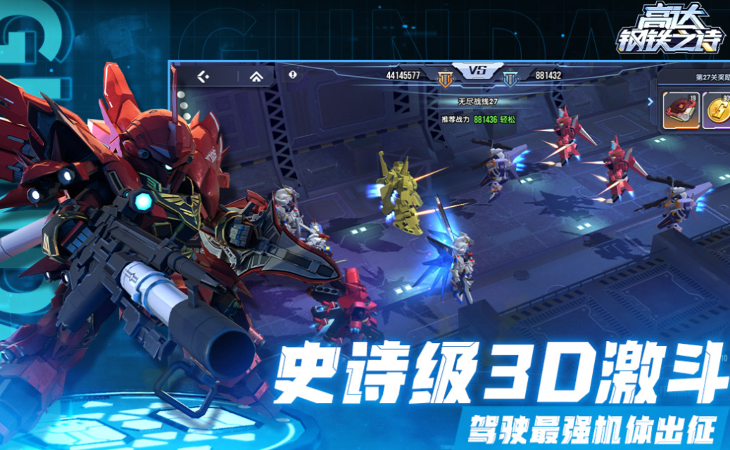 这是款世界观颇具规模的精品漫改3D卡牌游戏,史诗级的特效跟震撼的高达世界观令人着迷,卡牌养成跟机甲元素的融合更让玩家心驰神往,全3D的卡牌激战体验带来的震撼感觉无与伦比,玩家可自由放置一些强悍的高达战士完成博弈,史诗级音画跟金铁交加的BGM不会让你失望,高达爱好者尝试下高达钢铁之诗这款佳作吧。