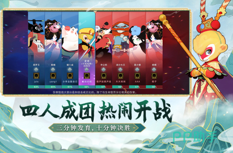 在闹闹天宫游戏中,以中国神话西游记为蓝本打造,将io与MOBA游戏精髓相融合,采用4V4的大乱斗对抗模式,摒弃了传统MOBA冗长的前期发育与复杂地图设计,去除装备和防御塔元素,仅保留铭文和天赋系统,极大地加快了对战节奏,营造公平竞技环境,在玩法上游戏目标是在10分钟内,率先收集到1000个蟠桃的队伍获胜。