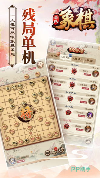 作为一款融合传统棋艺精髓与现代智能技术的对弈平台,为象棋爱好者们打造了一个沉浸式的对弈天地。它不仅支持单机练习、联网竞技,还有智能人机对战,不论玩家属于新手行列还是高手阵营,皆可寻得契合自身的对战模式。精致的棋盘布局,辅以智能AI的暖心助力,再加上棋谱回放功能,让玩家在每一局对弈中都能尽享博弈的乐趣与智慧碰撞。更是内容丰富,从初级入门到大师经典对战,一应俱全。