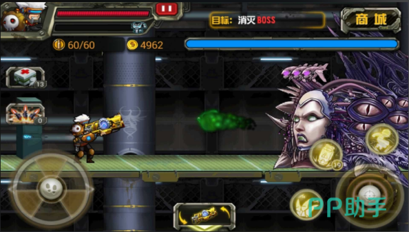 一款僵尸末日主题横版动作手游,游戏有上百个难度逐步增加的关卡,主要围绕强力boss战展开,玩家要灵活运用二连跳、武器切换等技巧应对强大的boss,游戏有20多种武器和十几种技能,玩家可以通过升级角色和武器逐步解锁,支持自由搭配。游戏采用美式街机风格画面,搭配打击特效和音效,游戏沉浸感很棒。