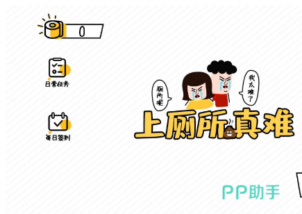 一款别具一格的休闲益智竞速游戏,整体风格轻松诙谐,画面清新且温馨,仿佛能驱散心头的阴霾,带来满满的治愈力量。游戏里,玩家要在有限的时间内争分夺秒,以最快的反应找到合适的如厕之处。其玩法简单易懂,哪怕是初次接触的玩家也能迅速掌握,轻松开启游戏之旅。在闯关过程中,还有丰富的奖励等待着大家,让乐趣不断的升级。