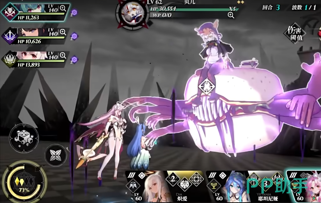 3技能“雷息”,全体魔女获得1回合的雷息,100%概率在攻击感电目标时,释放35%攻击力伤害的雷电,雷电伤害触发5倍感电效果,对所有敌人施加1层雷元素,这个招式同样共享冷却时间。