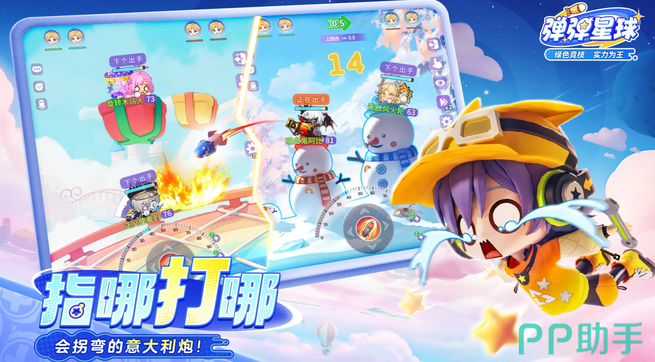 弹弹星球作为休闲类型的游戏,整个游戏的门槛比较低,玩家能够快速的上手。一旦形成高手之后,玩家还能够直接使用二段跳以及技能连招等等。特色在整个游戏当中,很多玩家发现弹弹星球还能够借助不断的去调整角度,控制力度,并且在风向方面做好精准的弹射攻击,最终能够实现回合制的对战,让玩家在操作上线方面得到满足,并且还能够获得较高的乐趣。
