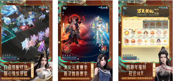 这款修真主题的角色扮演类游戏也呈现出气势恢宏的玄幻世界,采用回合制PK设定和扎实的剧情呈现,自由搭配各种流派衍生出的各类打法也十分硬核,玄幻世界历险与策略布阵的战斗机制完善,新赛季推出的各种宠物和坐骑看上去很拉风,满屏横飞的酷炫特效加持也让战斗感觉更加给力。