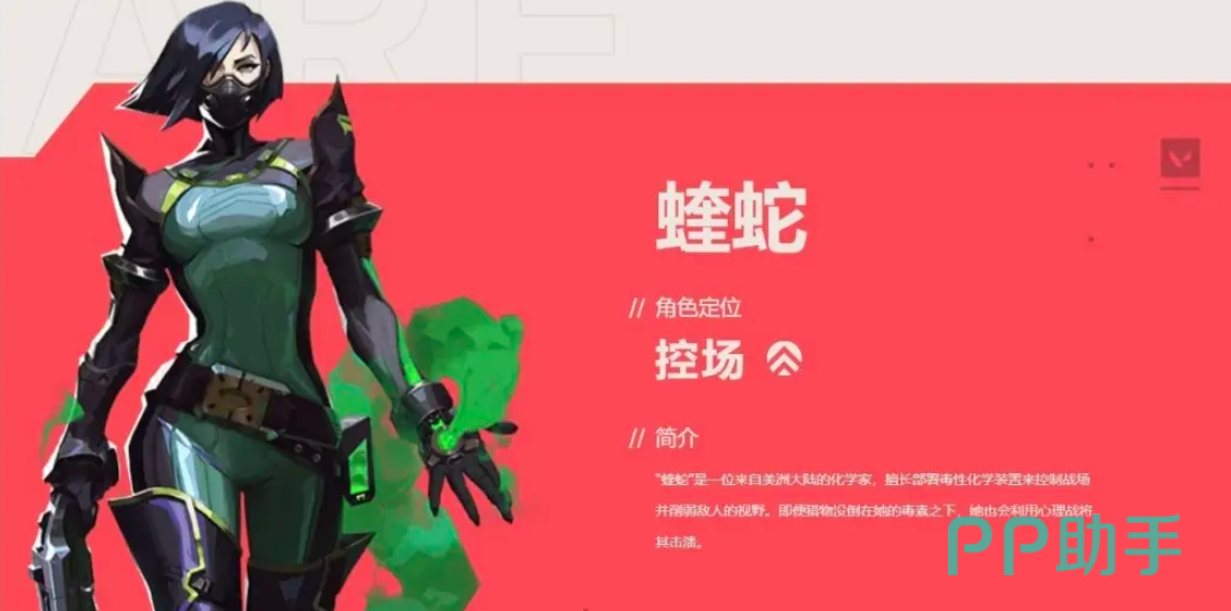 蝰蛇是控场,能依靠削弱敌人来控制整片战场,她的“蛇吻”会发射出一个碰到地面就破碎的瓶子后,破碎后会留下一地化学溶液,对接触到的敌人造成伤害并施加易伤,她的“瘴云”会丢出一个气雾喷射器,至此点击会消耗燃料生成瘴云,来影响敌人的视野,她的“毒幕”会发射能穿越地形的喷射装置,消耗燃料产生一道幕墙,她的绝技会朝着自己的四周喷射气雾,让范围内的对手视野收缩,并且遭受到“腐坏”效果,腐坏中招者的最大生命值将被下降到1点。