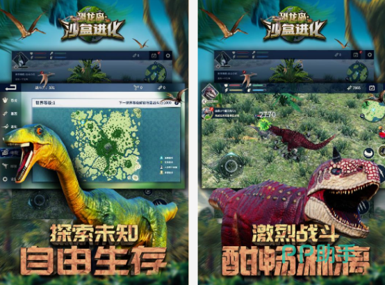 可以展开恐龙进化的,采用3d真实的画面设计,每个玩家都在开局以后,可以选择自己喜欢的食肉型恐龙或者是食草类型的。选择了以后,在充满着博弈厮杀的游戏环境当中,会遇到其他的生物,甚至是各种类型的恐龙,要不断的击杀其他的敌人以后,提升恐龙的基因,甚至是等级利用找到的恐龙伙伴以后,还可加入共同的战斗中。